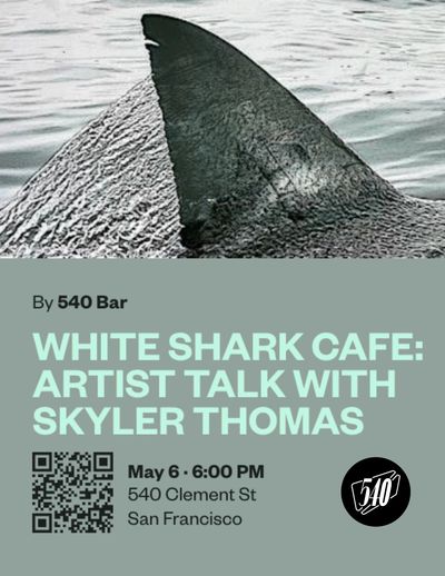 The White Shark Cafe for humans is currently up at 540 Bar in the Inner Richmond District. Join us for opening night. 540 Clement St. at 7th Avenue.